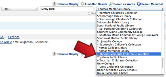 Please note that when you choose “Thomas Memorial Library” you will be searching the entire collection, not just adult materials.