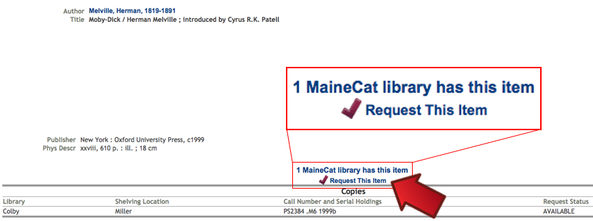 If you find an item you’d like to borrow through MaineCat, simply click on Request This Item.