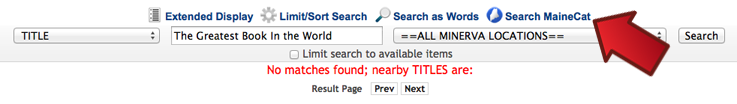 If you still don’t find what you are looking for, try expanding your search to MaineCat, which is the larger system that includes Minerva.