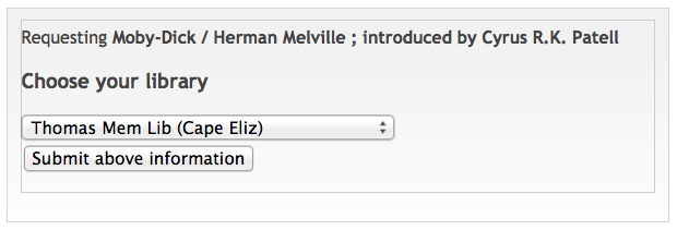 You will see a drop-down menu that prompts you to Choose Your Library. Scroll down to select Thomas Memorial Library, and click on Submit Above Information.